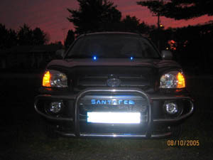 For those that acquired the Factory front brush guard part number 0830-26100 you can add a nice led effect to the Santa Fe lettering. This highlights it while driving. |
