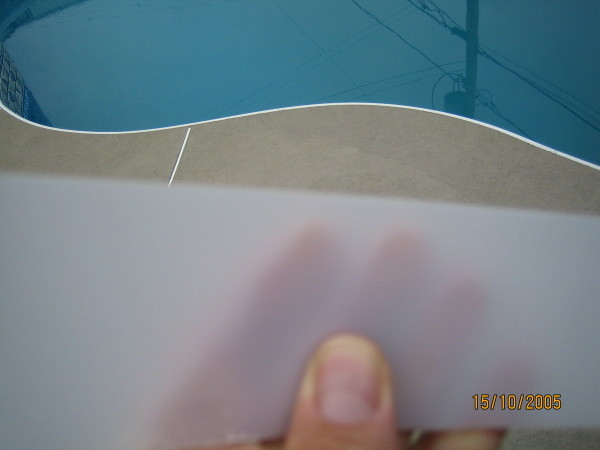 This view shows you the plastic strip and how thin it is and transparent. (You can see the installers fingers through it). |