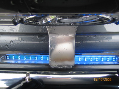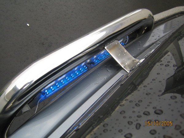 Attach the LED blue (or whatever color you choose) bar/bulbs to the plastic strip using 3M double sided tape. |