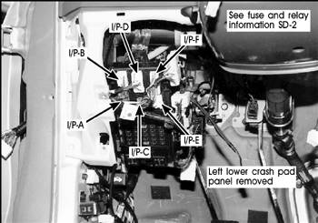 connector I/P-A after unclipping the top connectors and pushing the harness