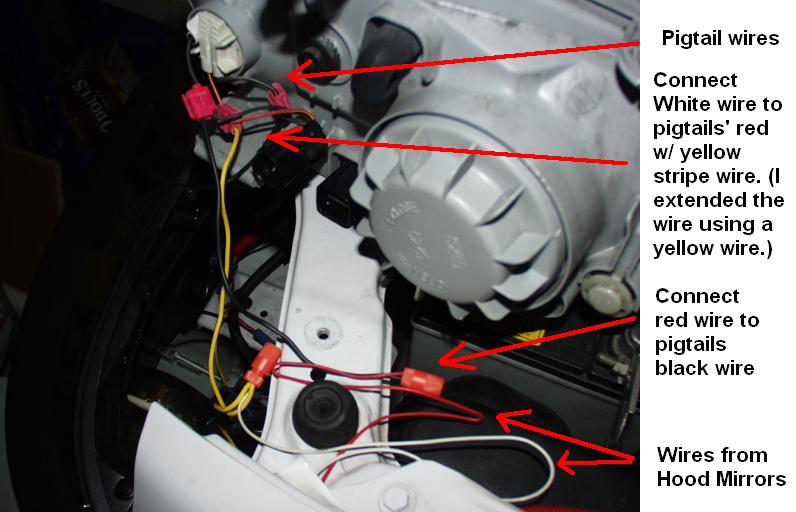 wires (red and white) to the Headlights. The headlights have a pig tail