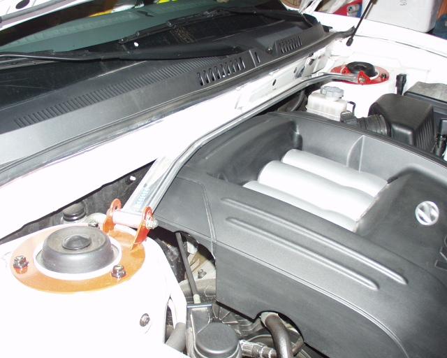 Most vehicles flex when cornering. Adding a strut bar reduces a vehicle's chassis flex by connecting the vehicle body at the shock towers for added stiffness. This improves a vehicle's road manners and handling characteristics by working with the factory suspension components and provide better performance driving. The modification shows you how to add a TFR strutbar to the Santa Fe. Additional info about the benefits of adding a Strut Bar can be found here. |